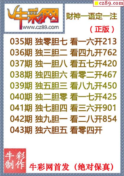 2026年043期白娘子3d跨度字谜【牛彩网特...