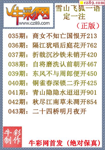 2026年043期七绝圣手3d和尾字谜【牛彩网...