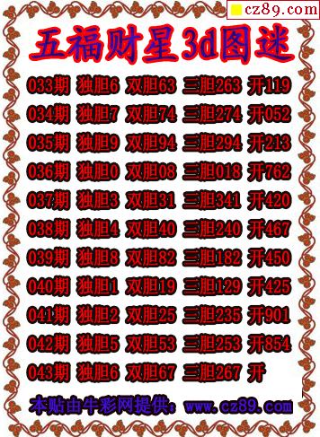 五福财星三胆2026043期3d图谜(原创)