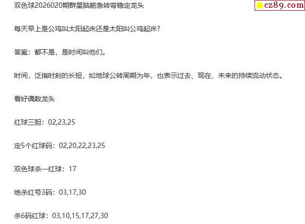 26年福彩双色球020期 群星脑筋急转弯定龙头字谜
