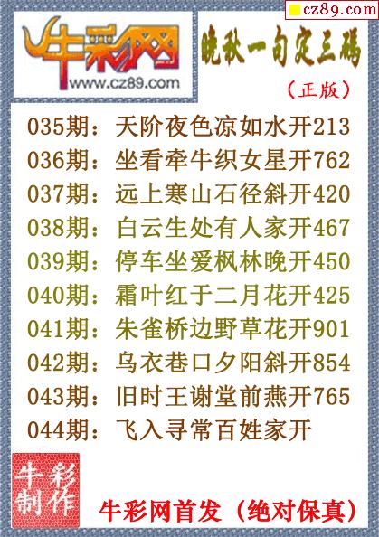 2026年044期七绝圣手3d和尾字谜【牛彩网...