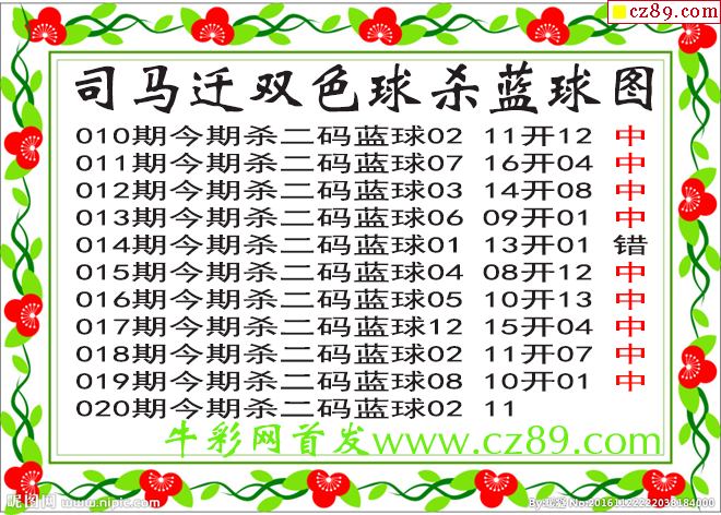 双色球020期 司马迁杀两码蓝球图谜 10中9