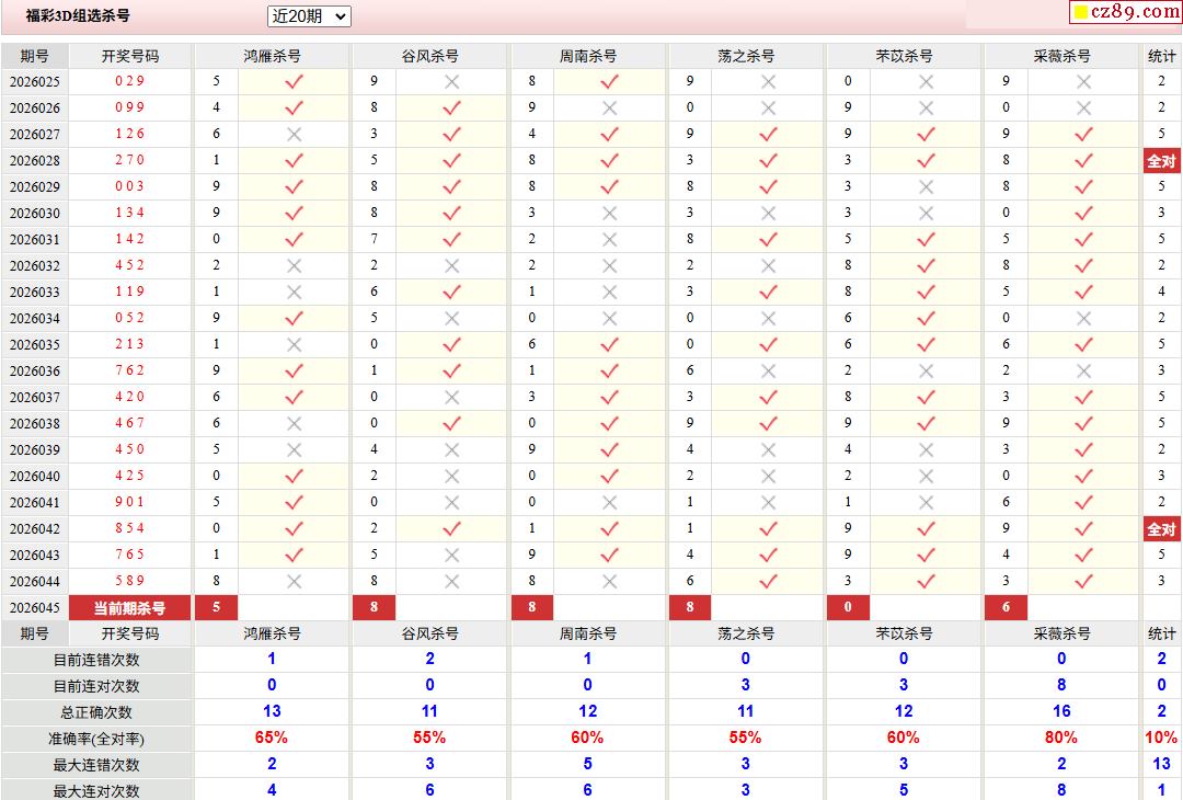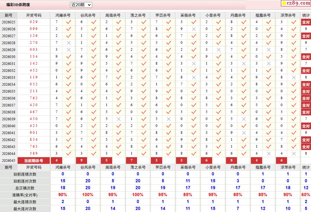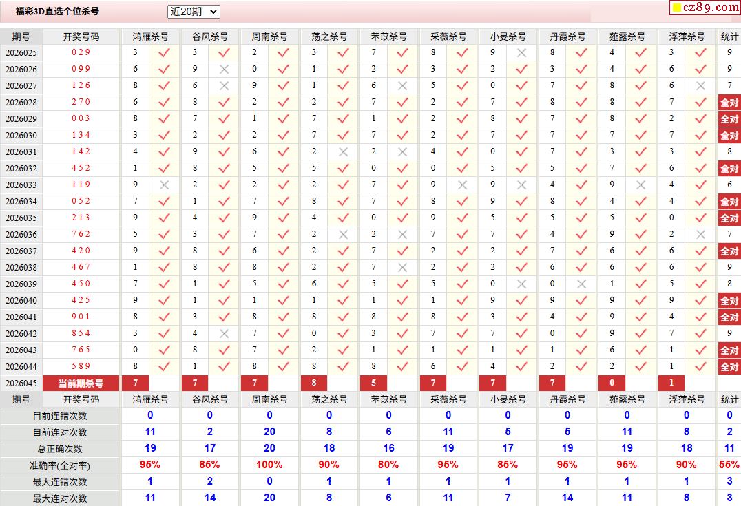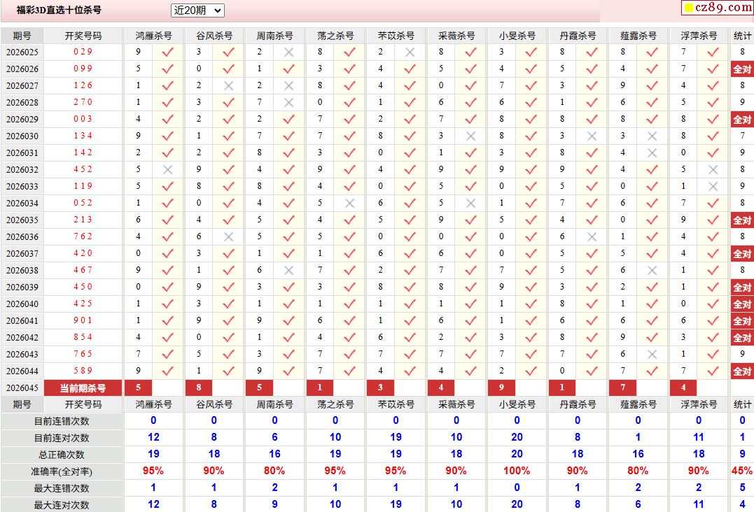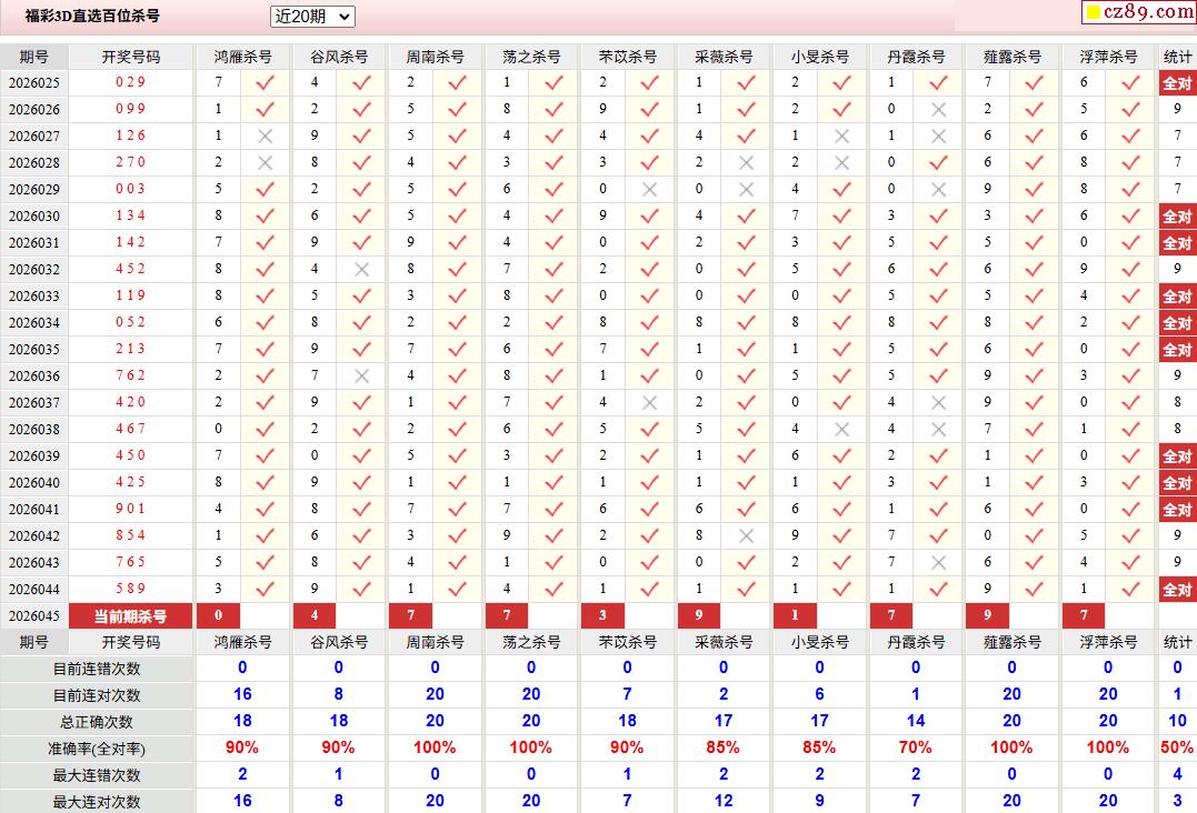 26年045期彩宝贝专家福彩3D杀号定码图表