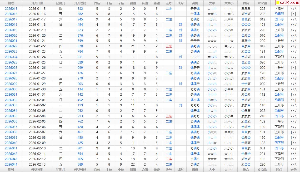 26年045期福彩3D综合统计表