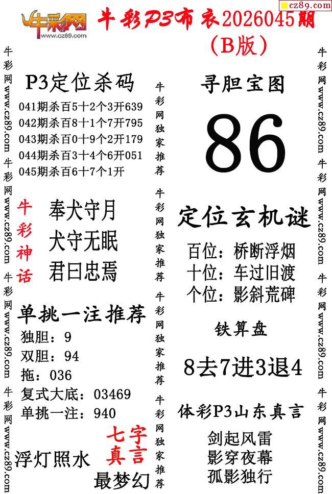 牛彩P3布衣26年045期AB版图谜(精华版)