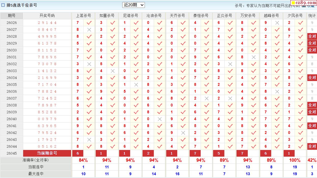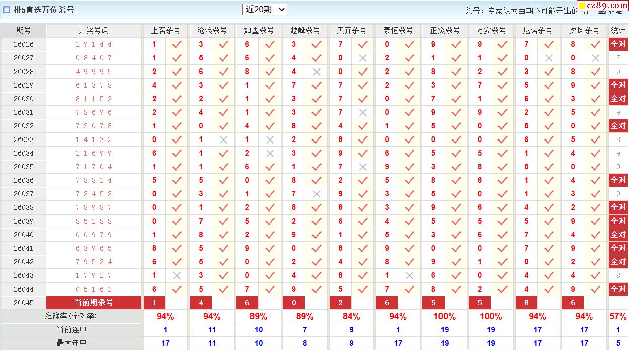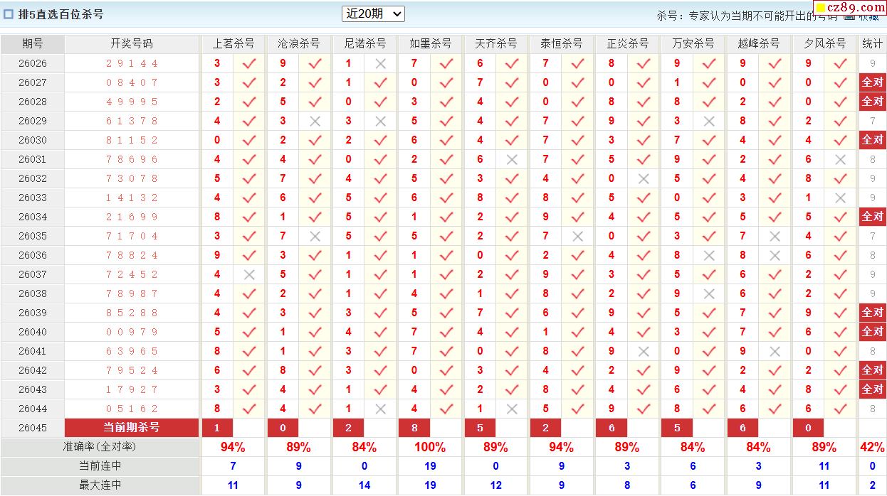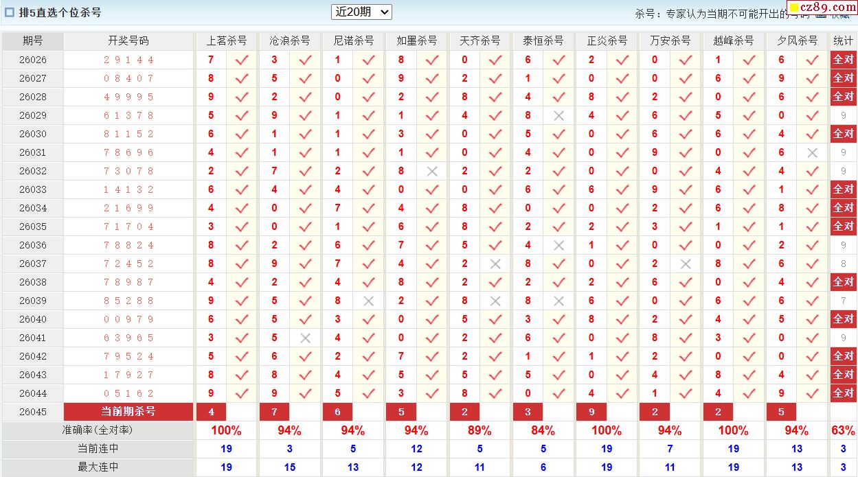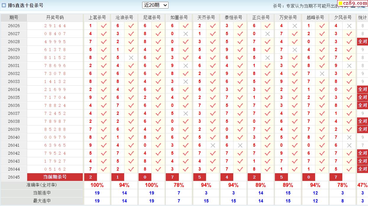 26年045期彩宝贝专家体彩P3杀号定码图表