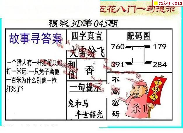 五彩神贝杀码2026045期3d图谜(原创)