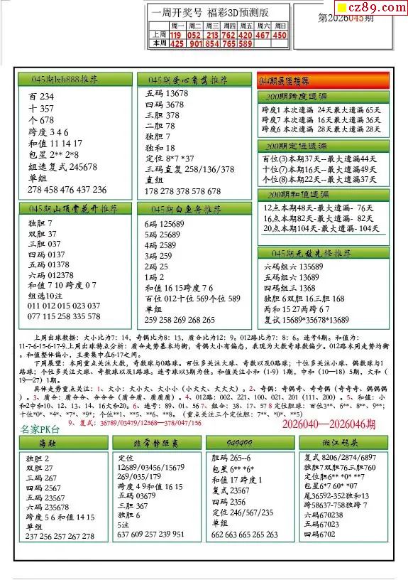 牛彩版3D预测彩报图26年045期打印版