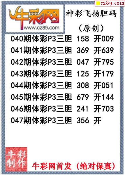 神彩飞扬三胆047期体彩P3图谜(原创)