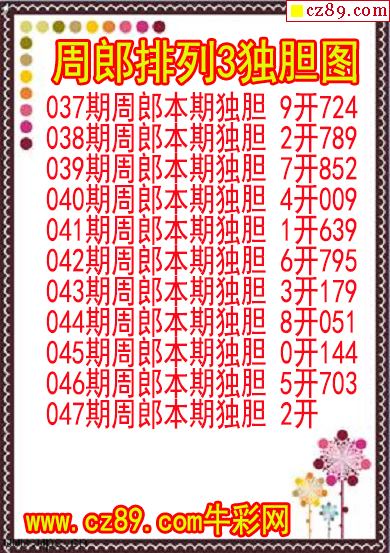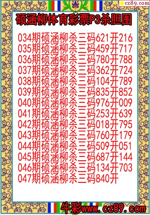 2026年047期牛彩网体彩P3画迷图谜汇总分享