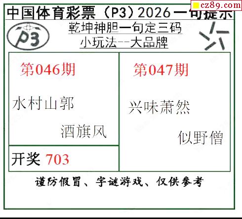 2026年047期牛彩网体彩P3画迷图谜汇总分享