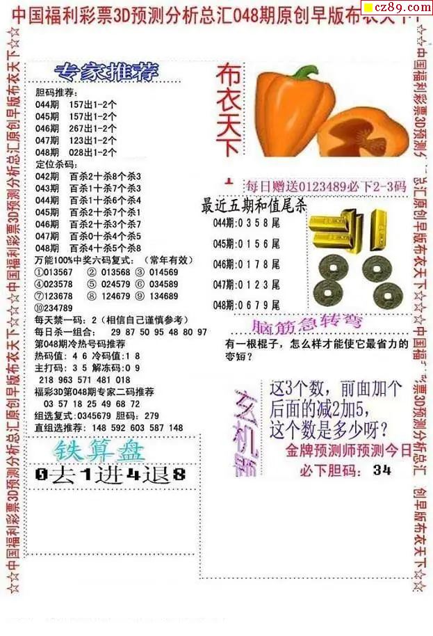早版布衣2026048期3d图谜