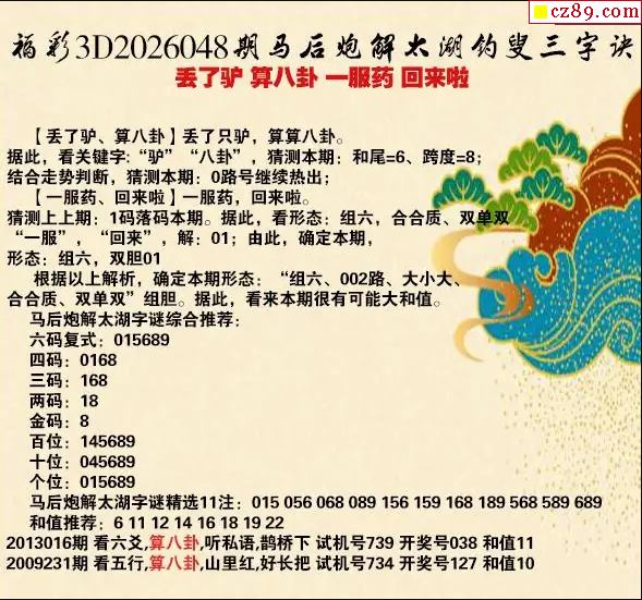 26年048期牛彩版解太湖钓叟三字诀今日汇总