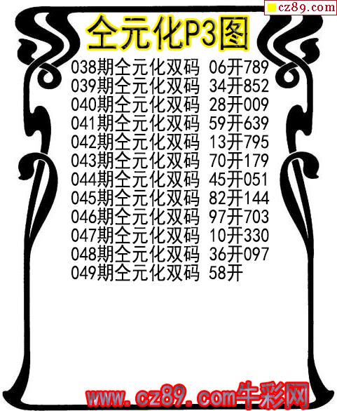 2026年049期牛彩网体彩P3画迷图谜汇总分享