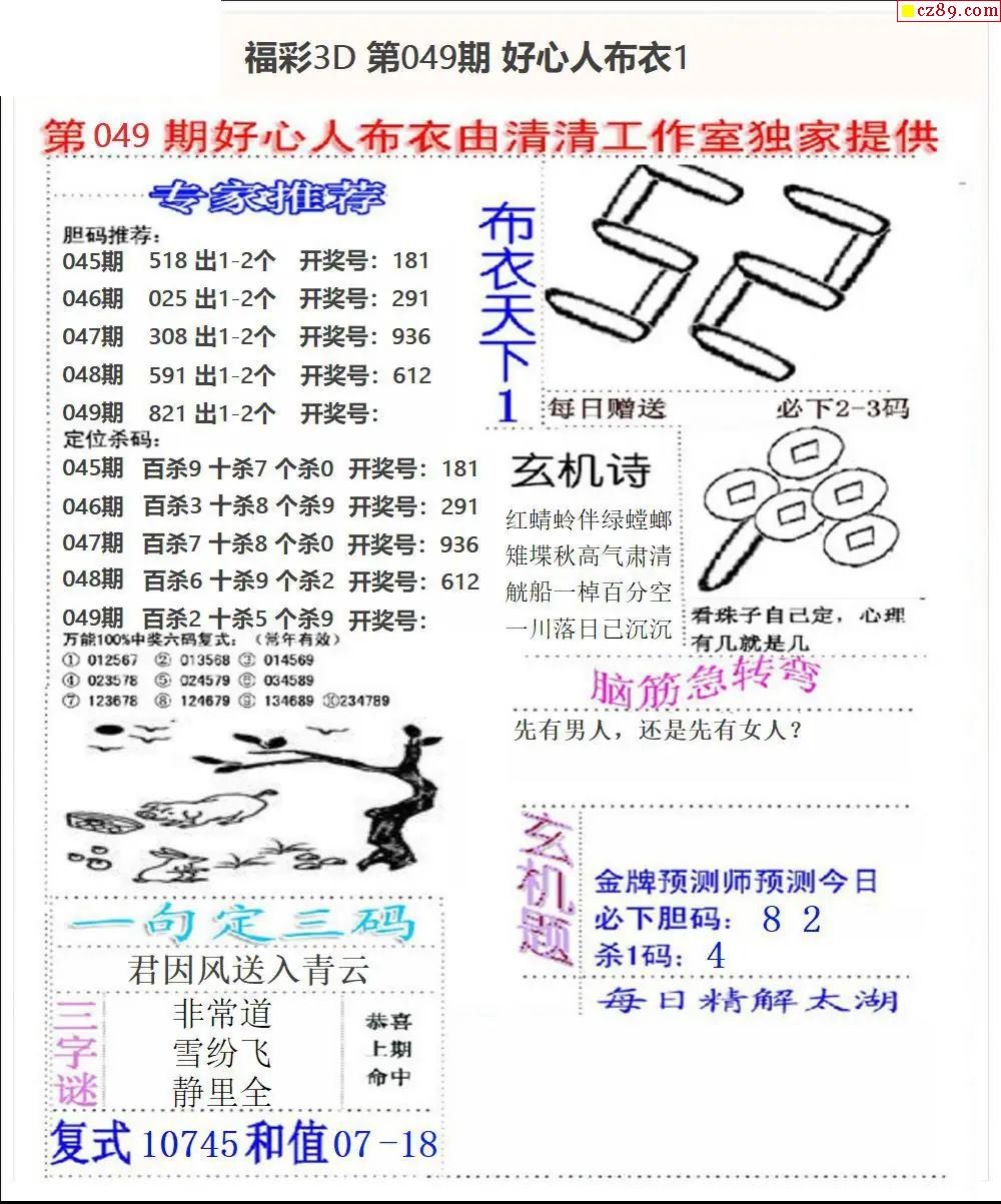 2026049期3D图谜汇总(一)