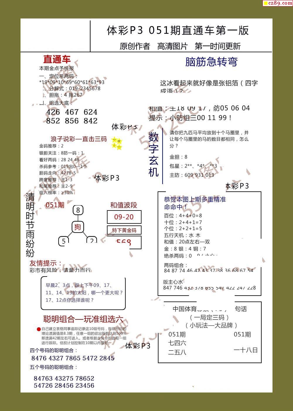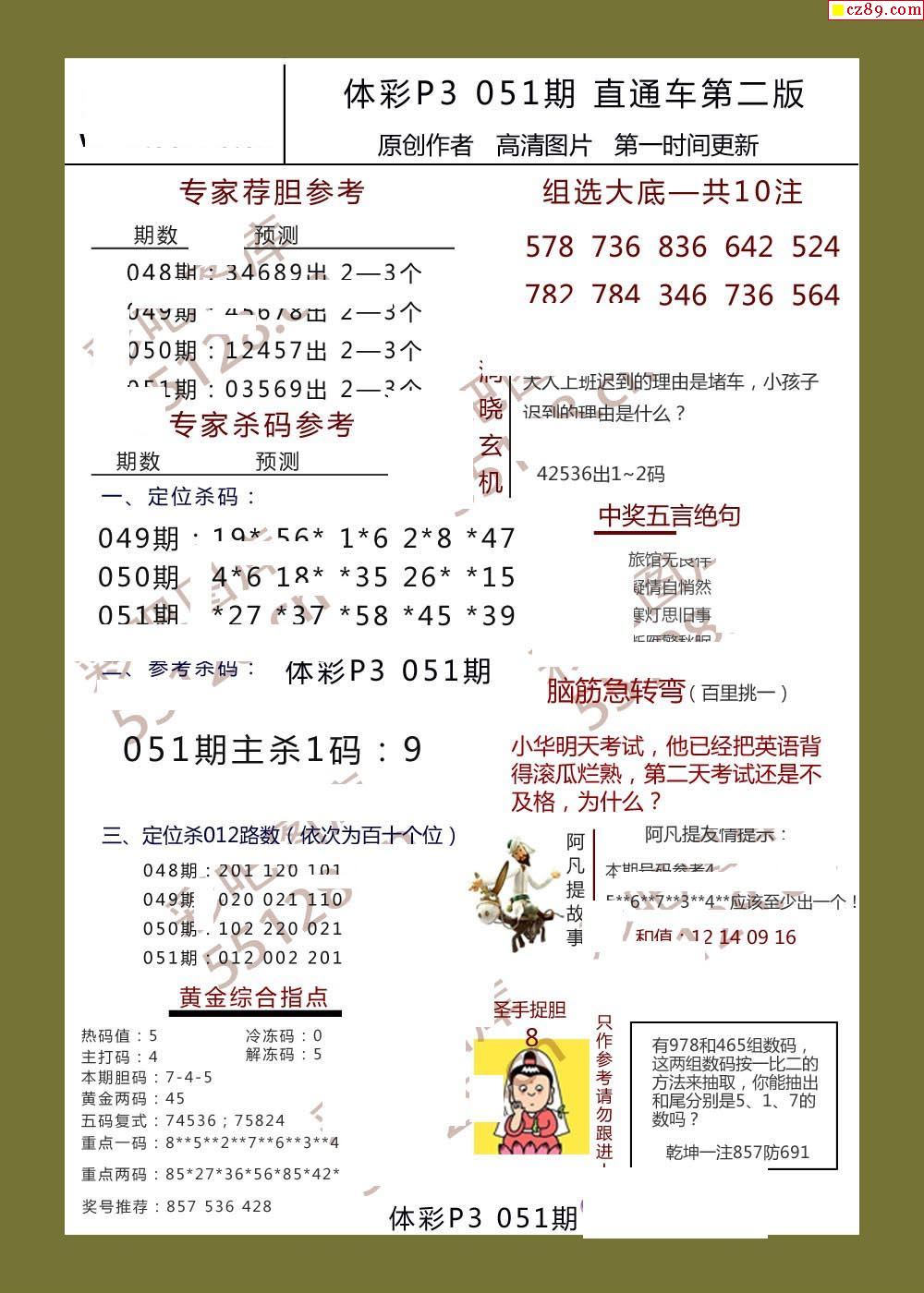 直通车AB版051期体彩p3图谜