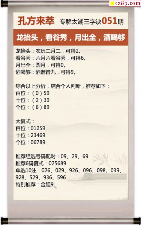 春琛破解3d051期太湖三原色 月出全