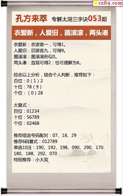 解谜大师26年053期太湖解释之 衣爱新