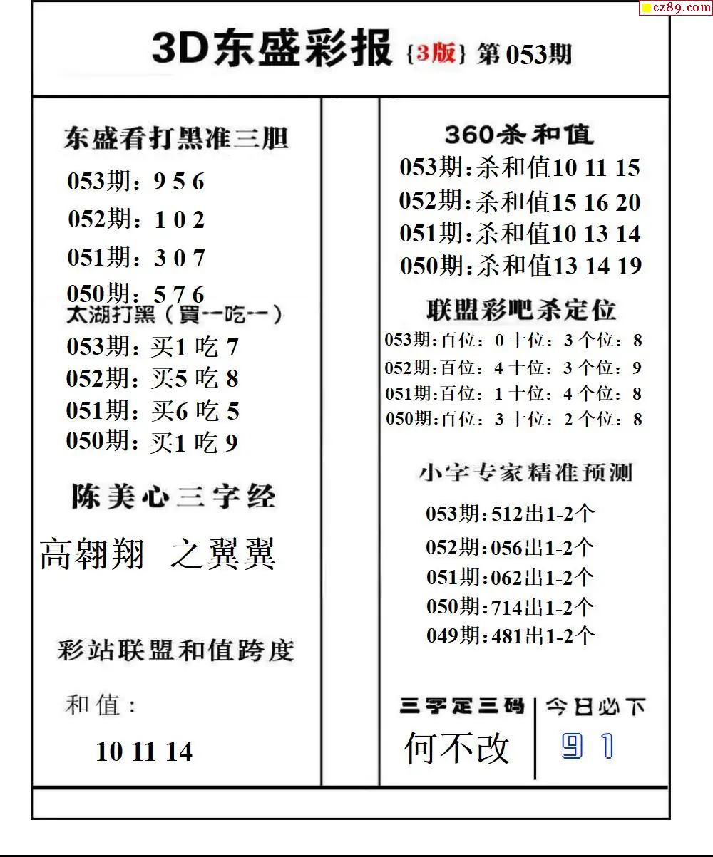 福彩3D2026053期东盛彩报+精品三毛会员版