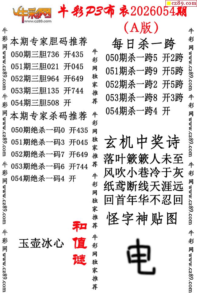牛彩P3布衣26年054期AB版图谜(精华版)