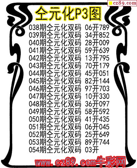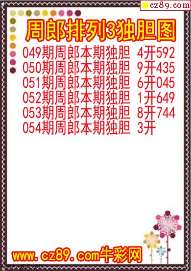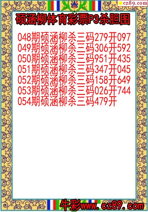 2026年054期牛彩网体彩P3画迷图谜汇总分享