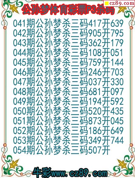 26年054期公孙梦体育彩票P3杀码图