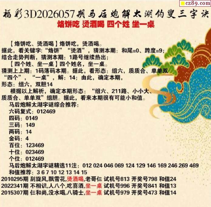 马前屁解26年057期3d太湖 坐一桌