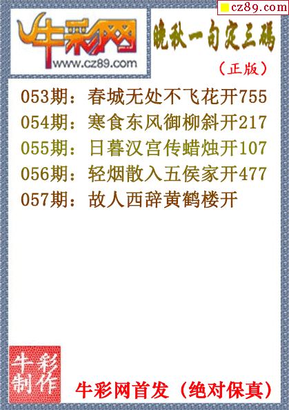 2026年057期七绝圣手3d和尾字谜【牛彩网...