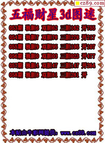 五福财星三胆2026058期3d图谜(原创)