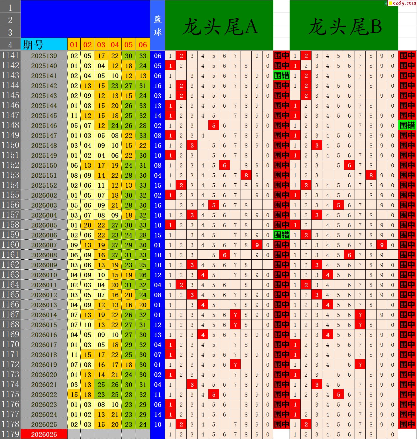 26年026期秋雨龙头凤尾走势图表