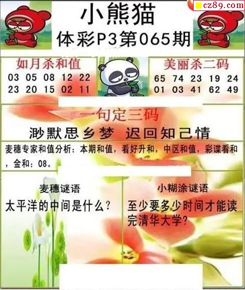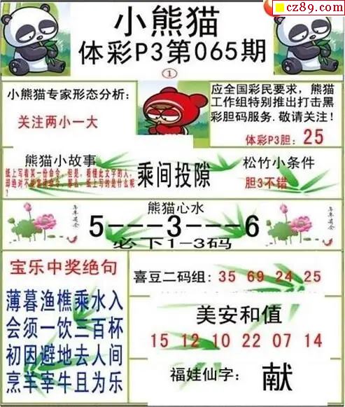 小熊猫2026065期体彩P3图谜