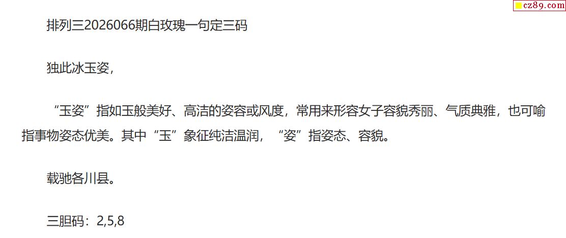 白玫瑰排三一句定三码26年066期