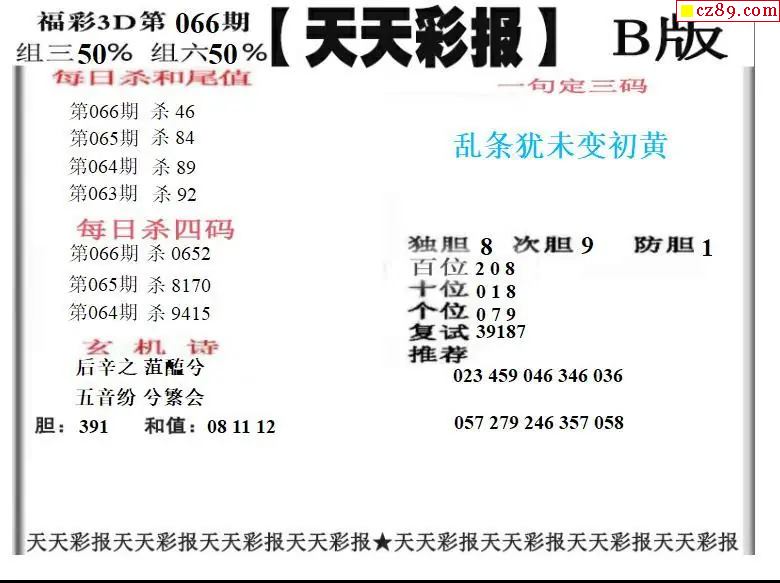 福彩3D2026066期天天彩报A版 天天彩报B版