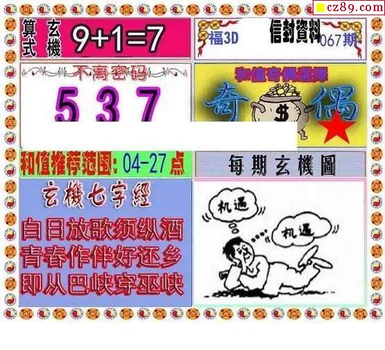 晚秋和值谜2026067期3d图谜