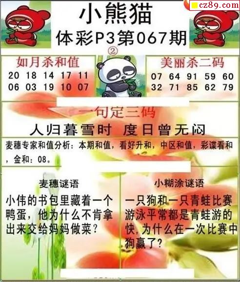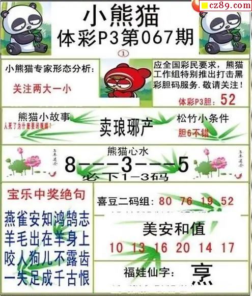 小熊猫2026067期体彩P3图谜