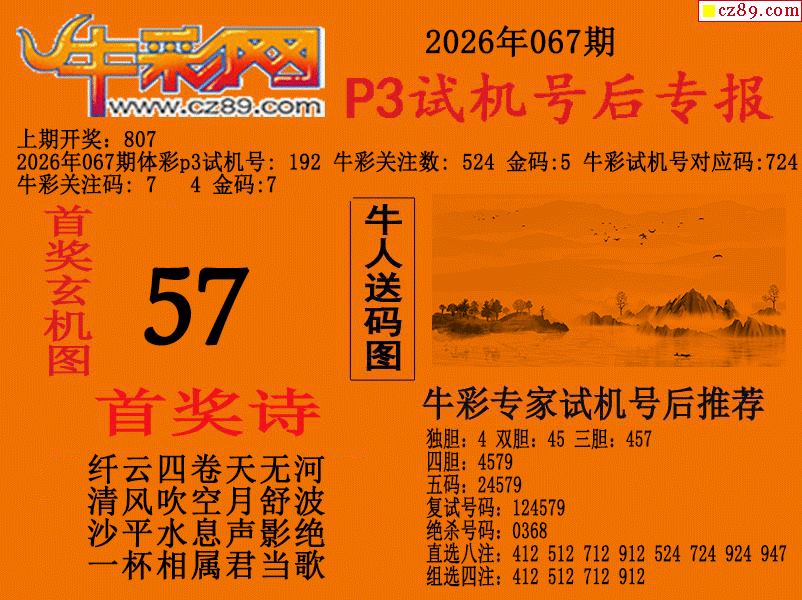 2026067期p3试机号后牛彩网专报