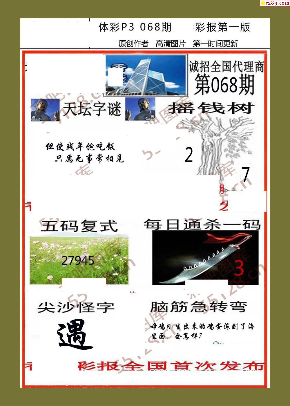 香岛彩报068期体彩p3图谜