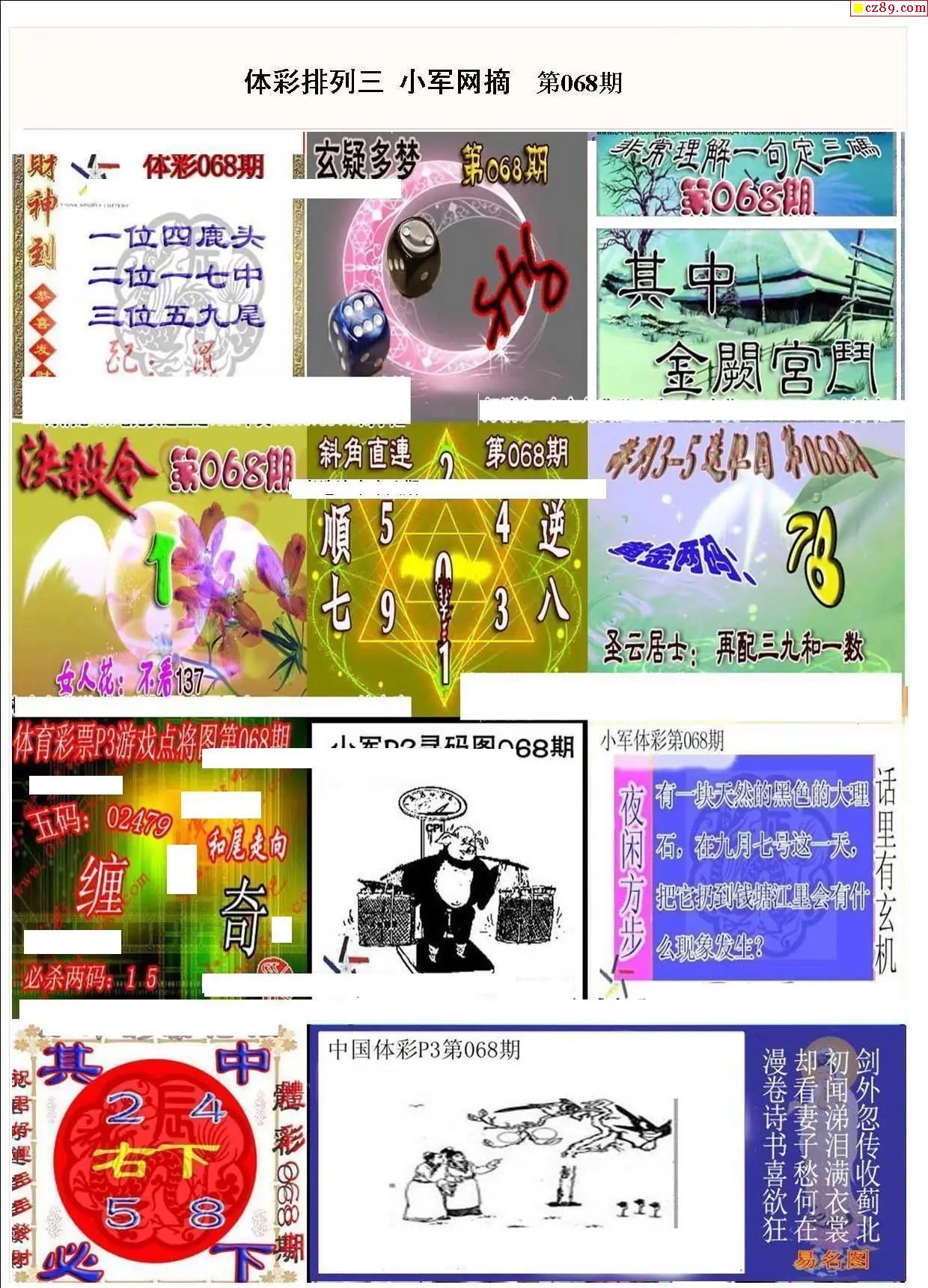 2026年068期牛彩网体彩P3画迷图谜汇总分享