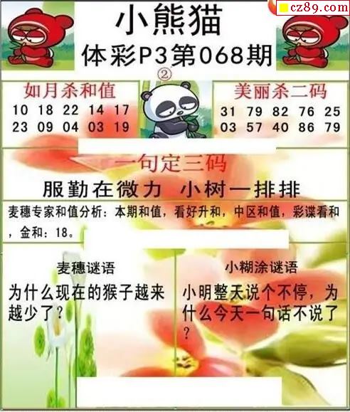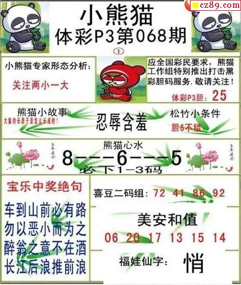 小熊猫2026068期体彩P3图谜