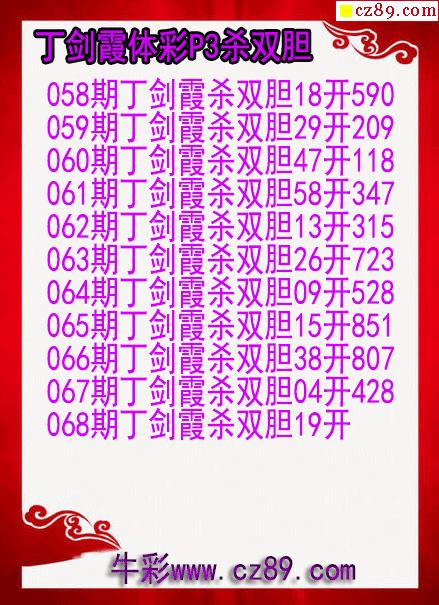 26年068期丁剑霞体彩P3杀双胆图