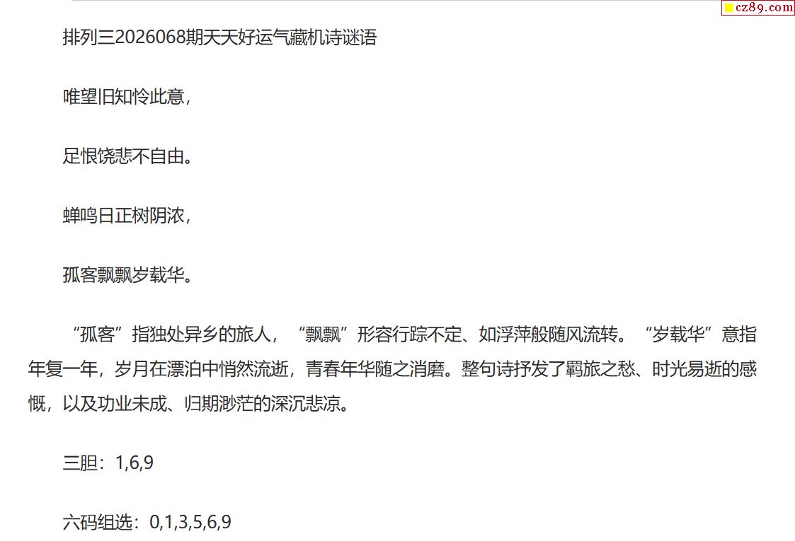 2026年藏机图068期 正版体彩P3藏机图诗汇总
