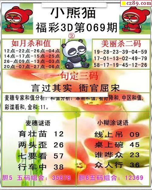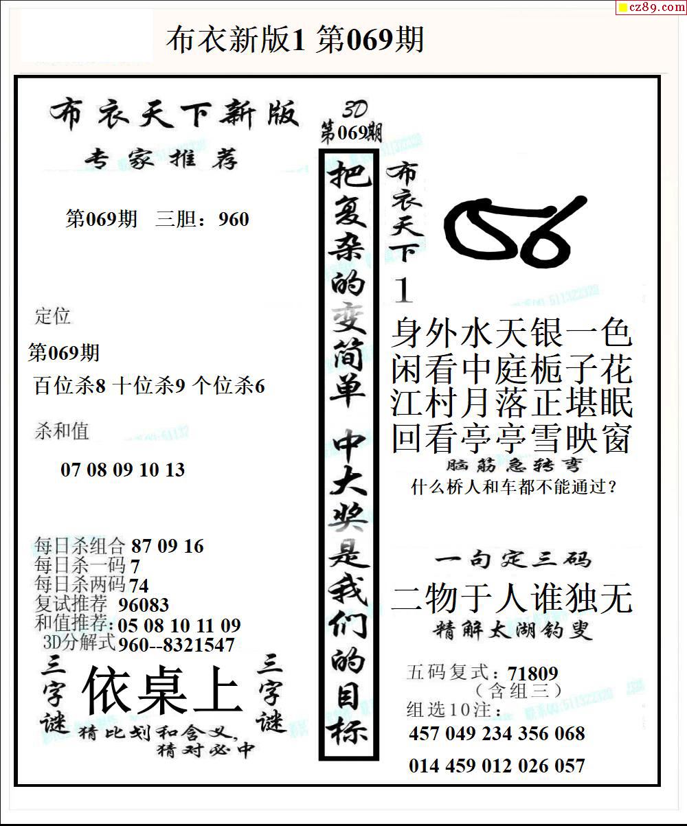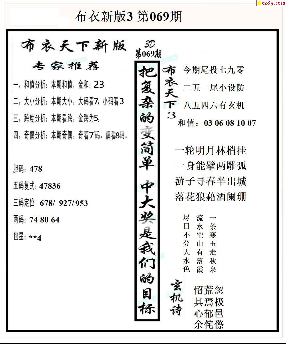 2026069期3D图谜汇总(七)