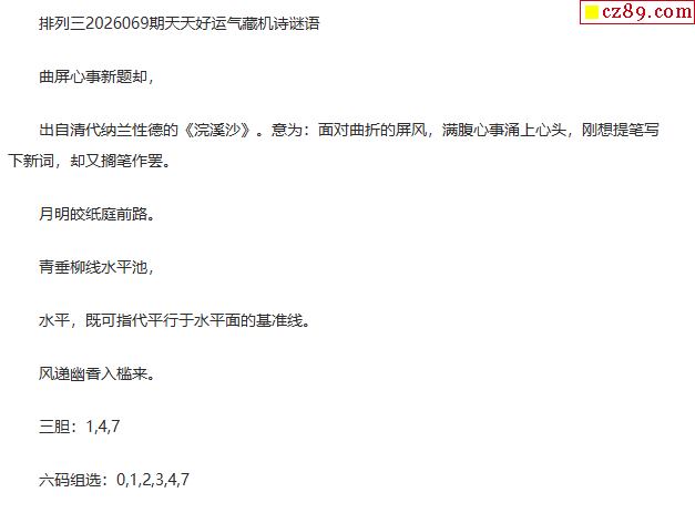 26年体彩P3070期 掌握一句定奖号字谜