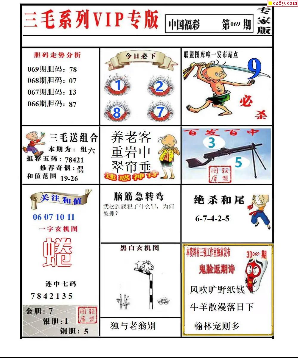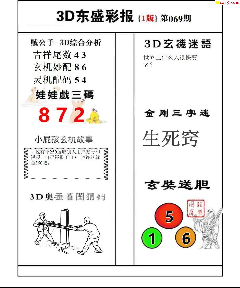 福彩3D2026069期东盛彩报+精品三毛会员版