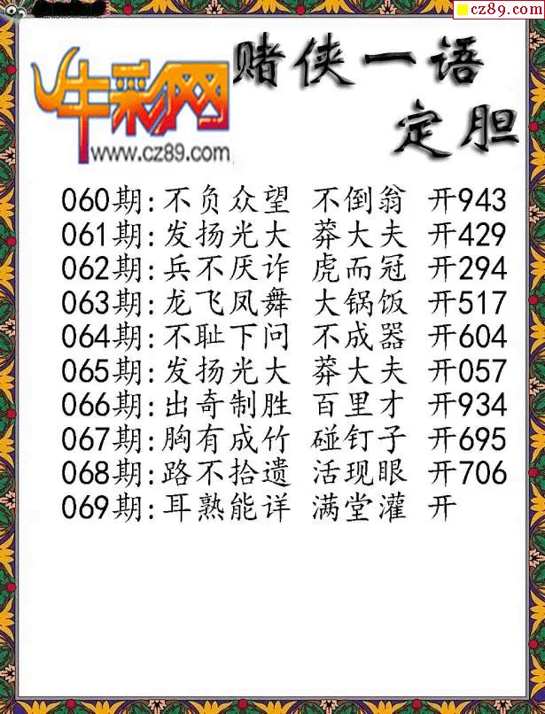 福彩3D2026069期彩赌侠一句定三码字图谜