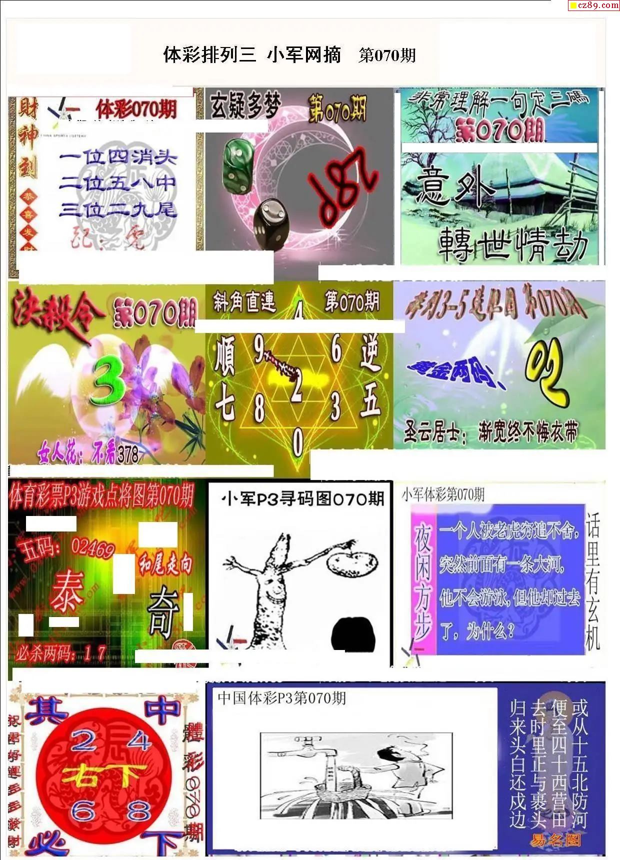 2026年070期牛彩网体彩P3画迷图谜汇总分享