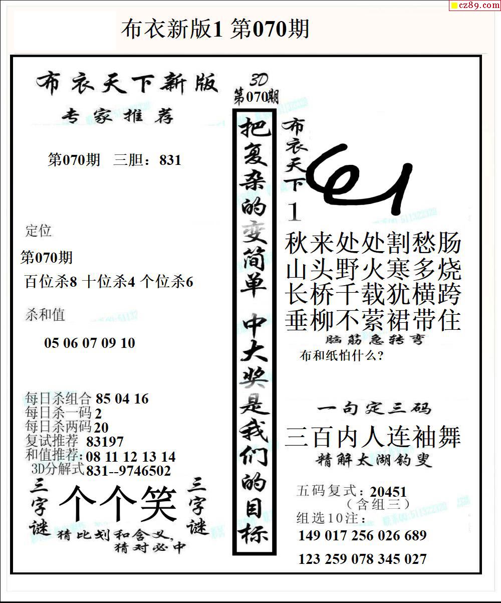 2026070期3D图谜汇总(二)