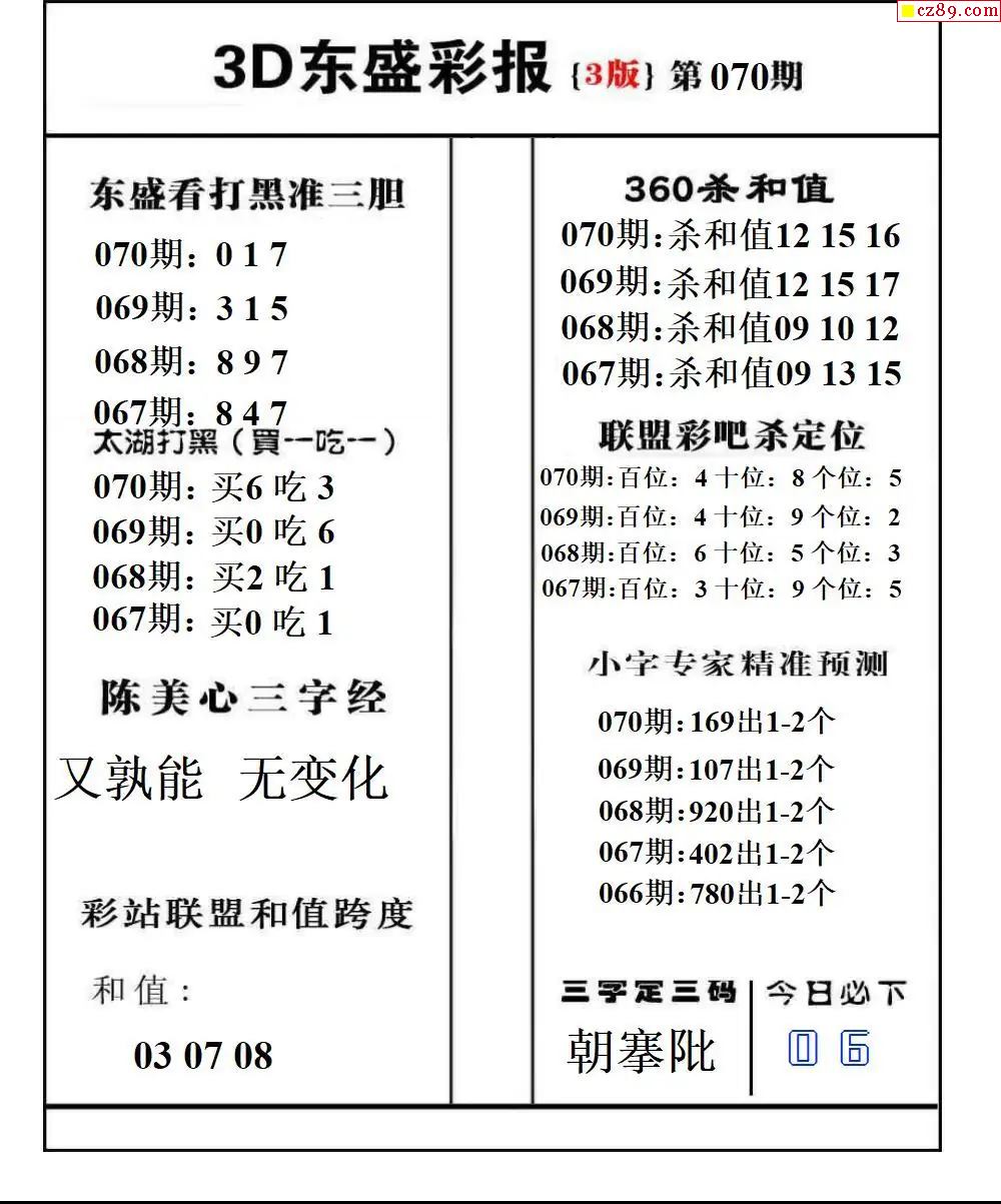 福彩3D2026070期东盛彩报+精品三毛会员版
