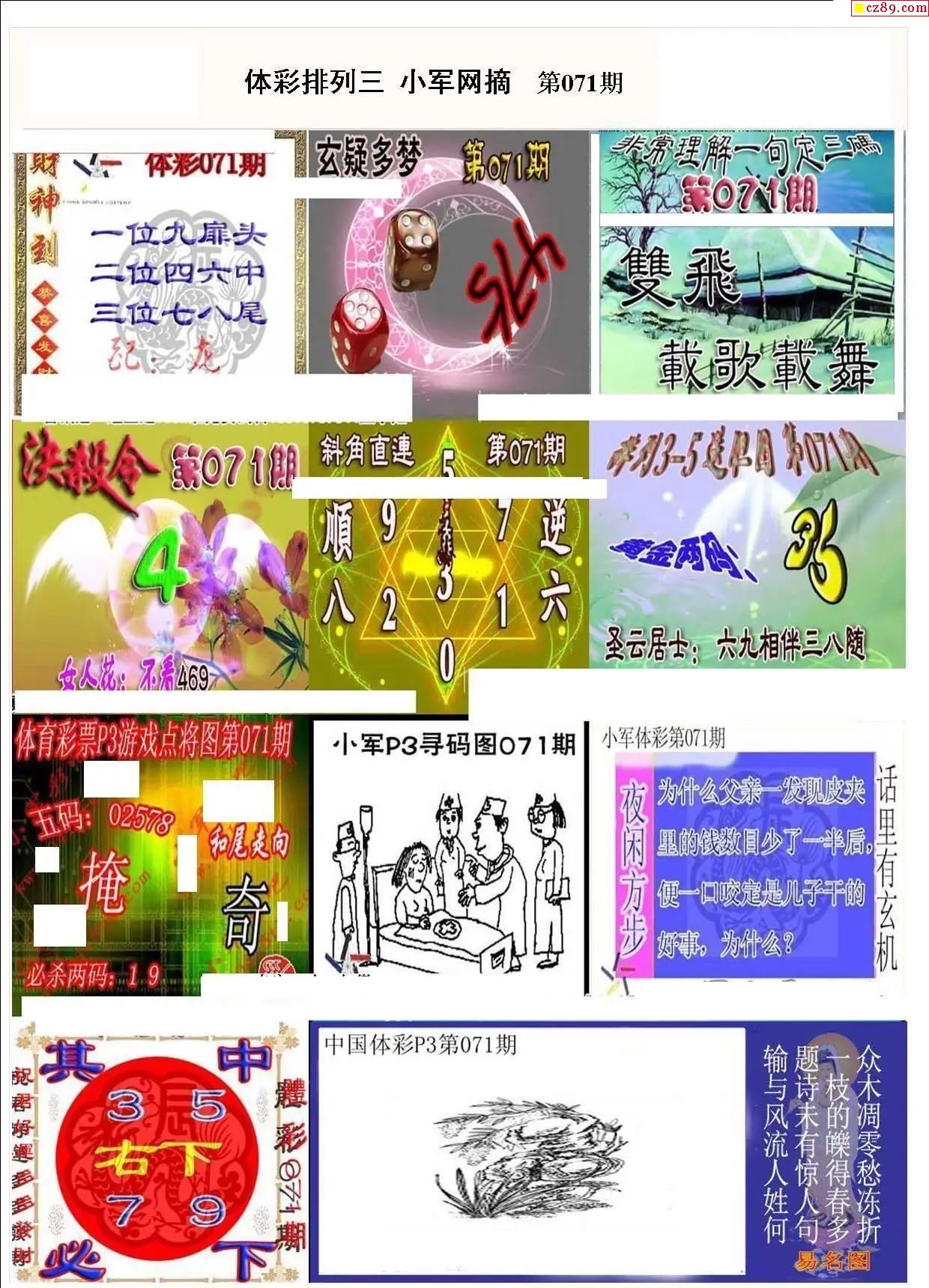 2026年071期牛彩网体彩P3画迷图谜汇总分享