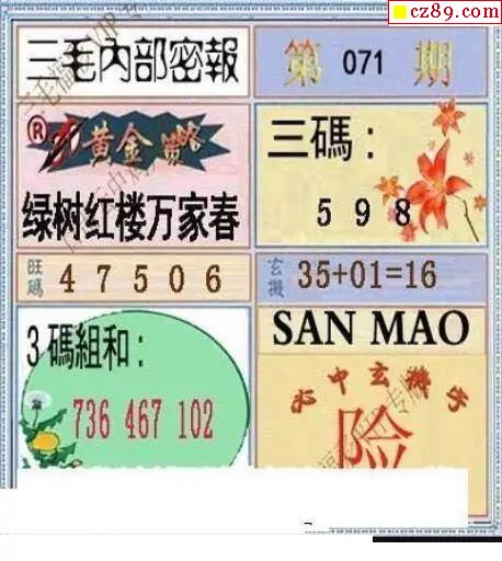 三毛图2026071期3d图谜